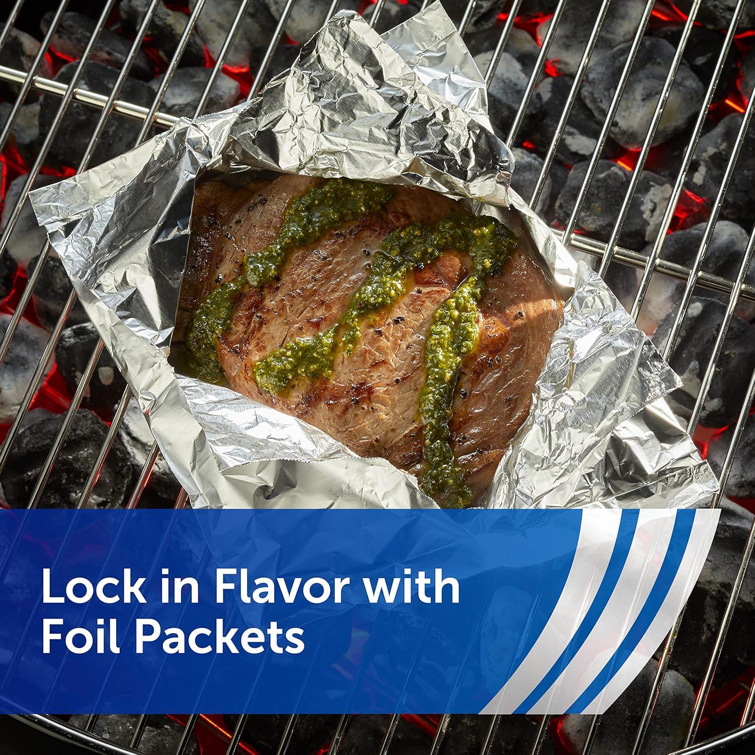 Great For Cooking and Storing-Use this versatile kitchen foil to line sheet pans for easy cleanup, wrap food for freshness, and cover food to keep warm, or use the aluminum foil to make foil packets for cooking